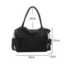 Confectionnée en nylon résistant avec des détails en cuir véritable, cette sac allie praticité et raffinement. Son grand compartiment accueille facilement votre ordinateur, maquillage, clés et bien plus encore — sans jamais compromettre le style.